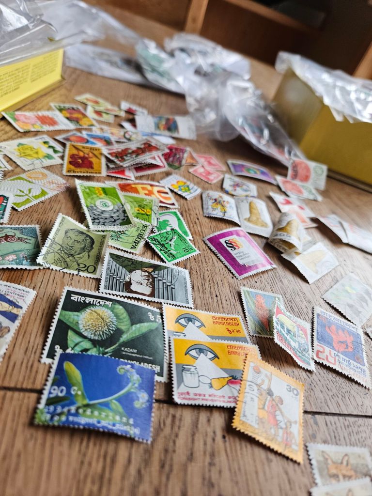 I ran across his stamp collection shortly after my encounter with the blanket flower. They needed to be this collage.