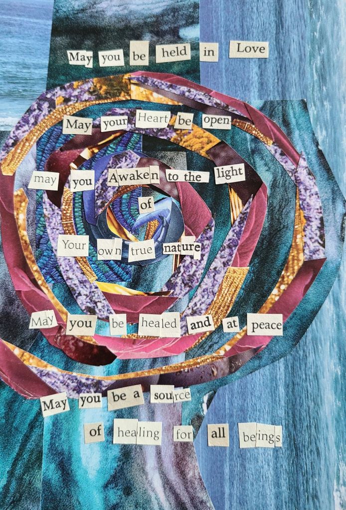 This collage is my attempt to collect, adapt, and remember the loving-kindness meditation phrases that mean the most to me. It’s a reminder to practice.