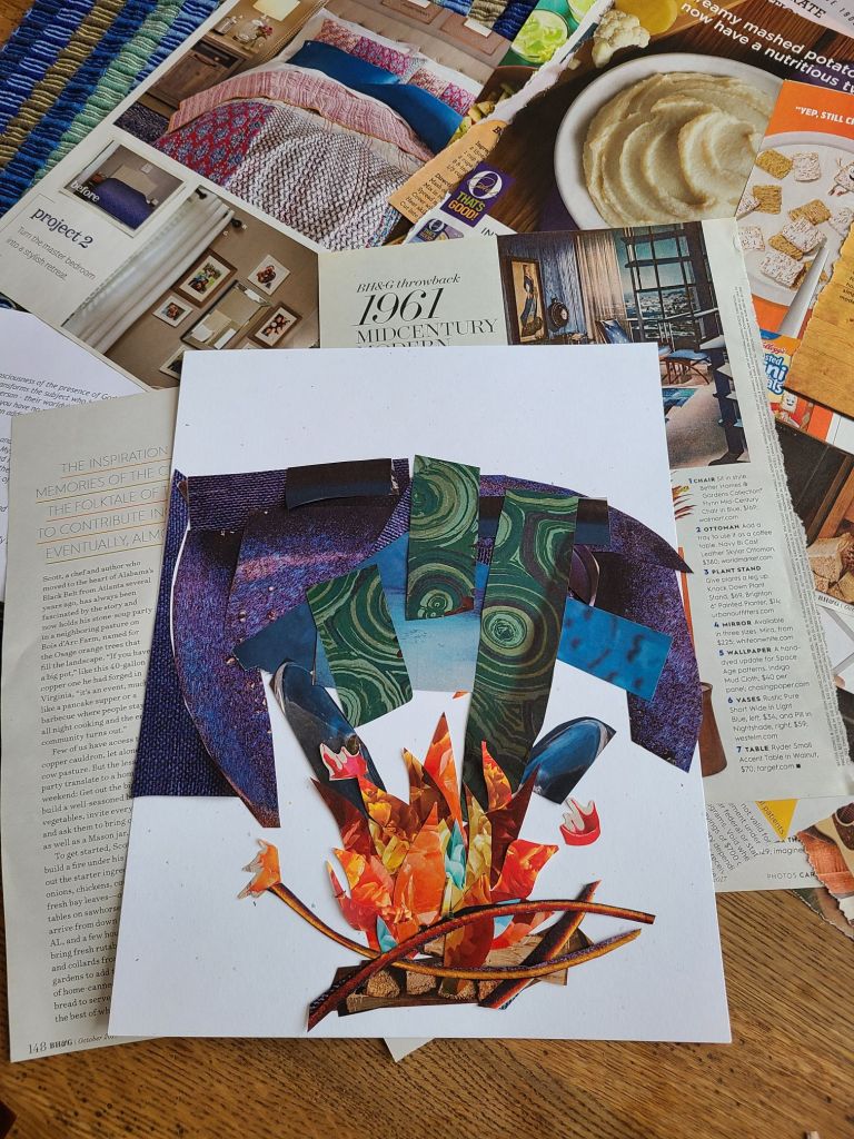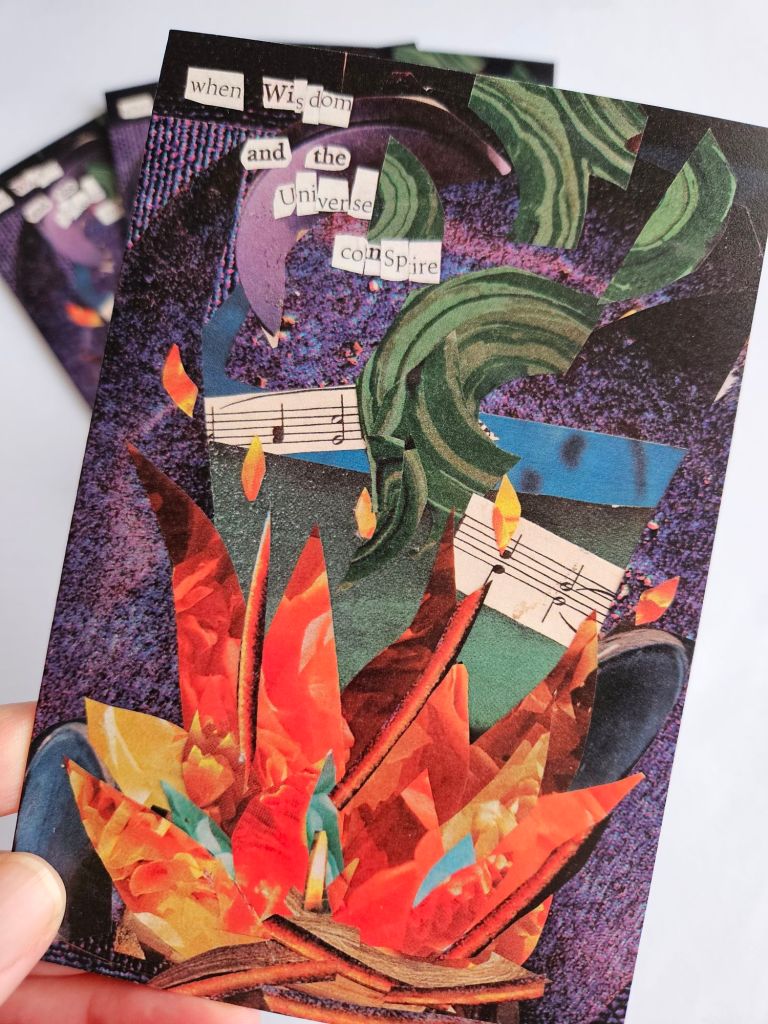 This collage began with a phrase that landed on my heart and invited me to play. The image became part of the process and work of naming Wisdom’s role and action in my life.