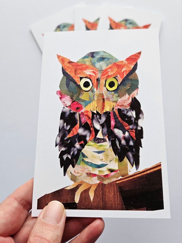 A collaged owl sits above my desk now. He delights me. And he reminds me to share.
